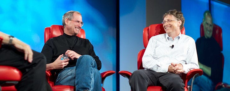 Heel anders zal het gaan bij Apple, de Herman Brood en Romanticus onder de IT-reuzen. Uiterst creatief en zelfbewust. Ze willen niet gewoon zijn, maar uniek. Ze zijn artistiek en kunstzinnig. Op een Mac en iPhone is alles esthetisch verantwoord. Ze zijn ook een beetje labiel. Telkens als een bepaalt type stekker algemeen geaccepteerd wordt, stappen ze over op een andere. En een beetje jaloers. Ondanks dat het als eerste bedrijf een marktwaarde bereikte van 1.000 miljard dollar, profileert het zich nog altijd als underdog.