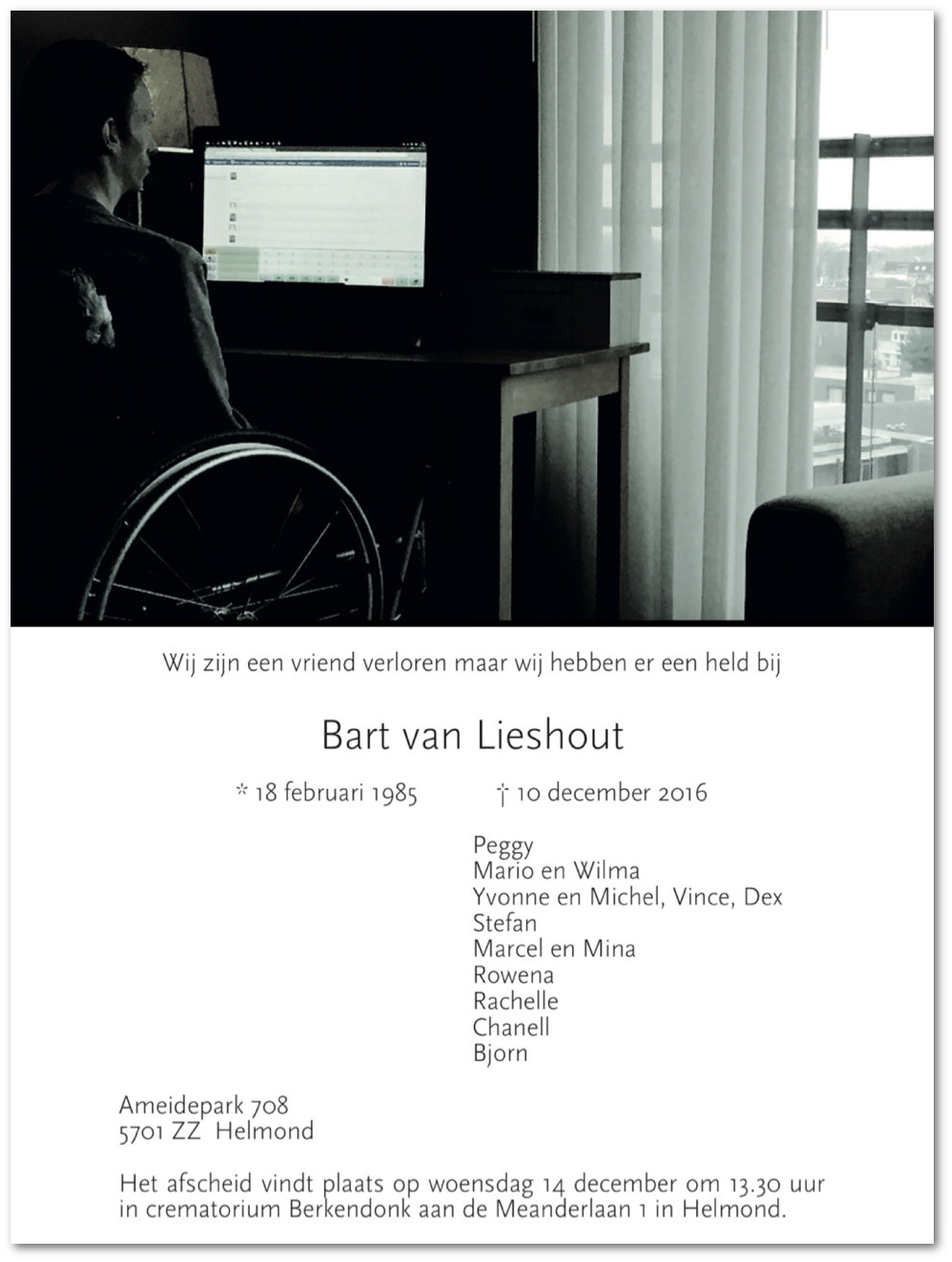 Online condoleanceregister: https://www.memori.nl/gedenkplaats/bart-van-lieshout
